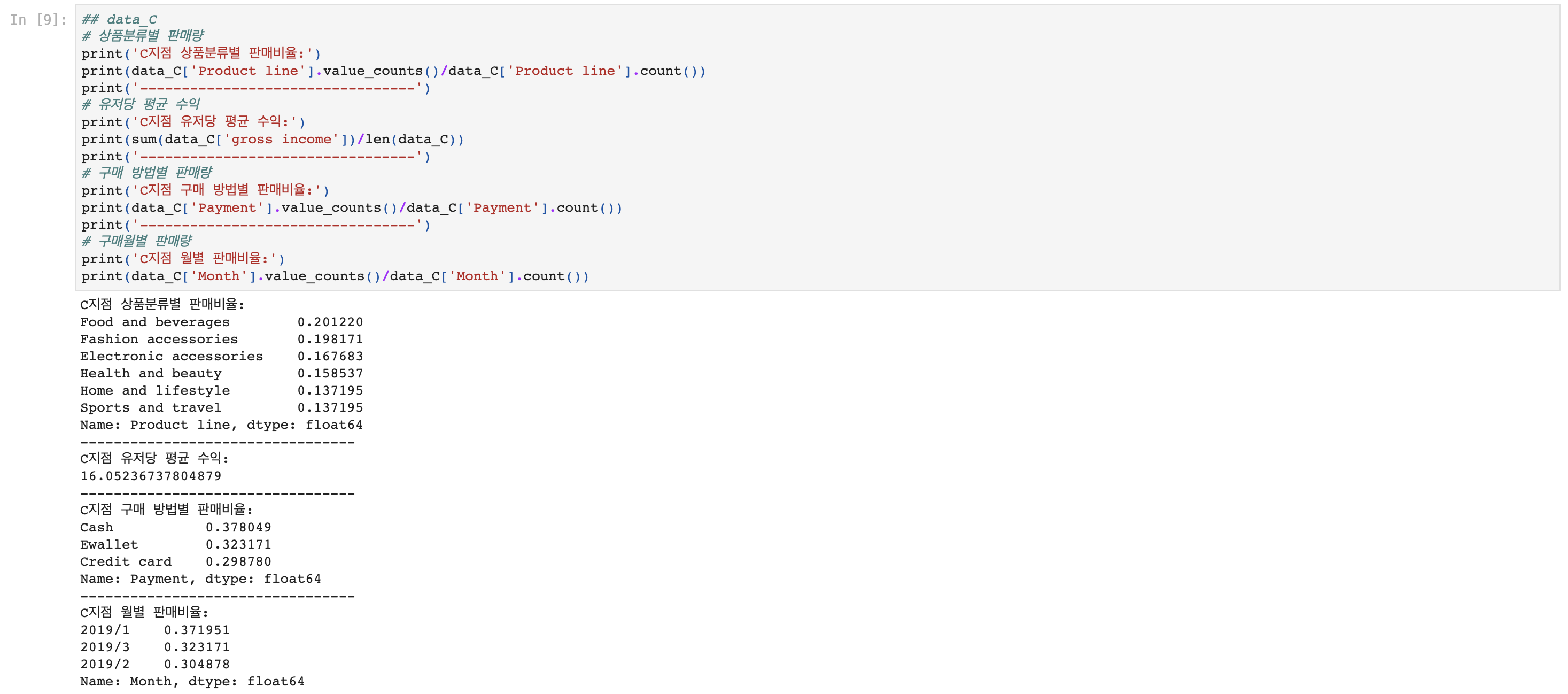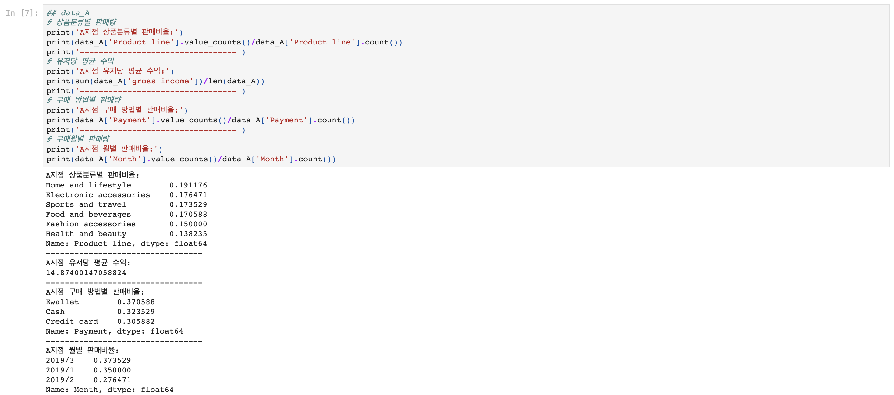 Supermarket의 지점(A, B, C)별로 나누어 코호트 분석을 진행해보면 여러 지표들이 차이가 나는 것을 발견할 수 있다. 가장 많이 판매되는 상품도 다르고, 지점 유저당 평균 수익도 다르며, 월별 판매비율도 차이가 난다. 만약 이러한 코호트 분석을 거치지 않고 마케팅 전략이나 신규 서비스를 기획한다면 특정 지점에서는 성공적이었어도 다른 지점에서는 큰 성과를 거두지 못할 수도 있다.