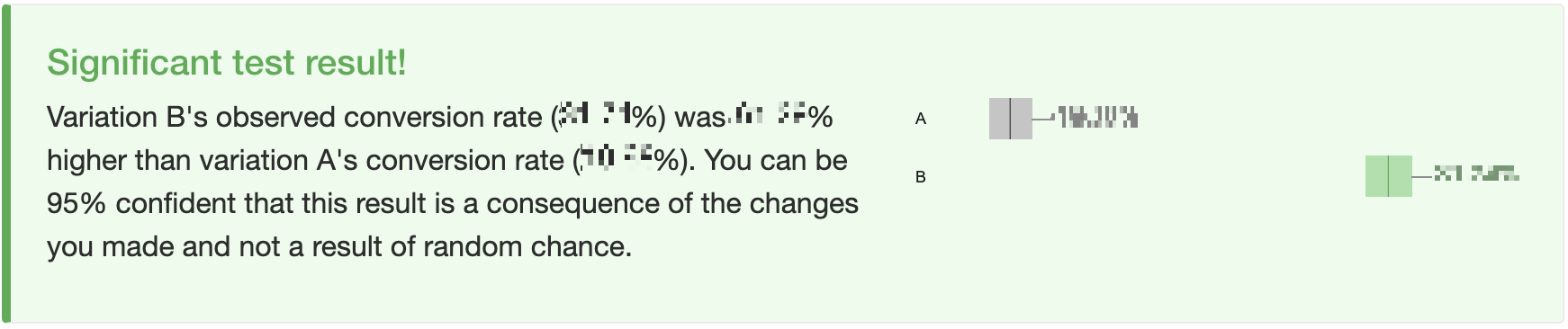 Test data의 Visitors와 Conversions 빈칸에 AB테스트의 핵심지표로 설정해 두었던 수치를 각각 입력하고, [Apply changes] 버튼만 클릭하면 끝입니다. 우측의 Test result에 AB Testguide가 알아서 AB테스트의 결과가 통계적으로 유의미한지를 해석해 줄 거예요.