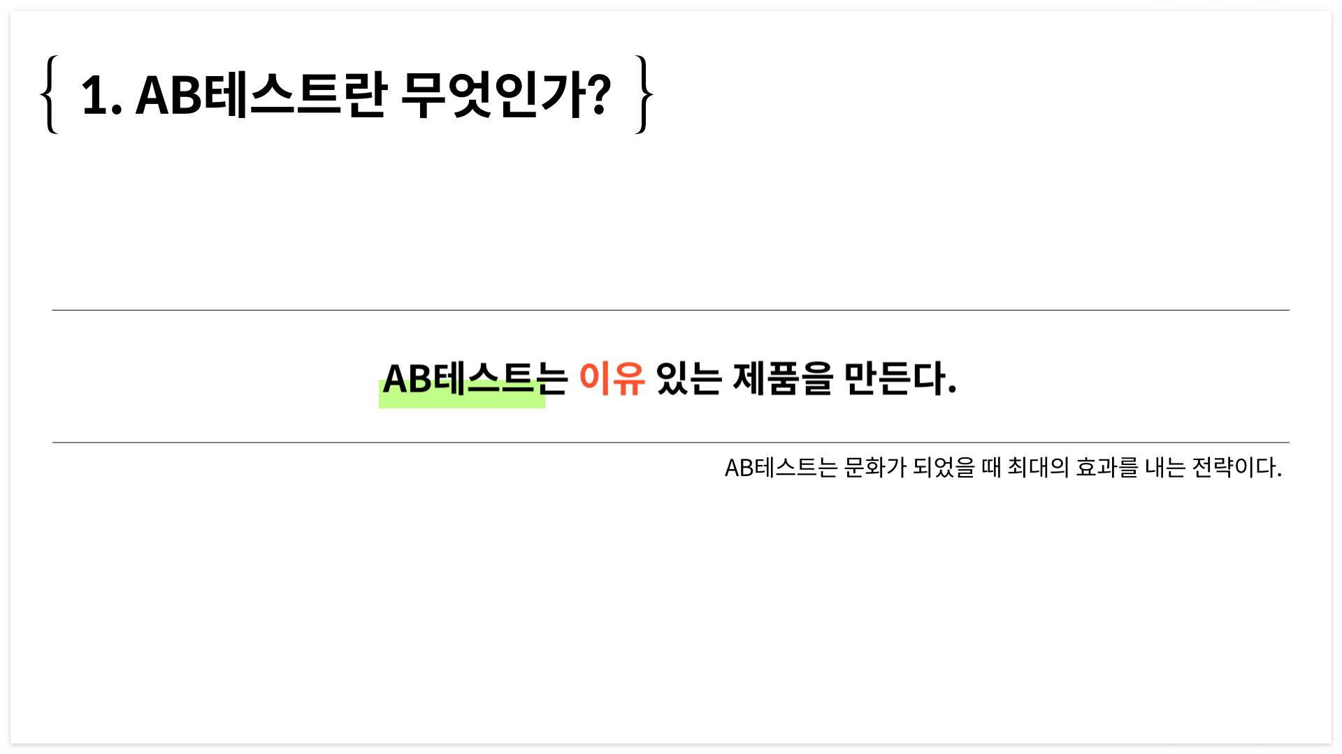 저는 이렇게 말하고 싶어요. AB테스트는 '이유' 있는 제품을 만들기 위한 방법론이다.