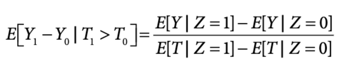 - 한 방향으로만 처치를 준다고 가정하면 (단조성 가정) 순응자에 대한 평균 처치효과를 파악할 수 있다.